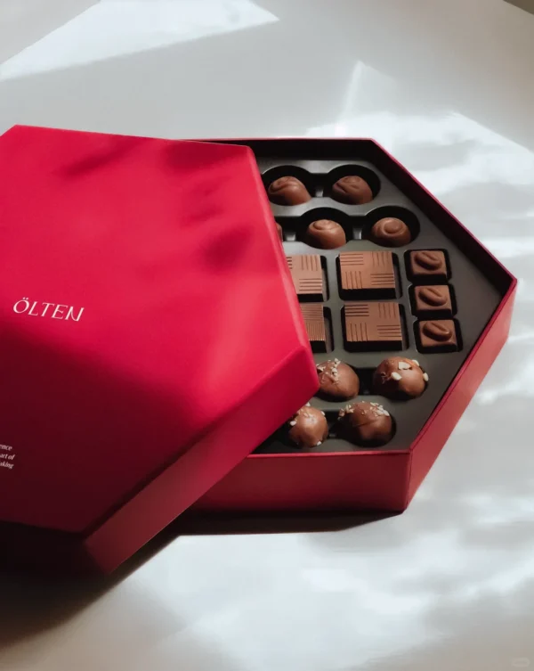 The unique hexagonal rigid box structure immediately elevates the perceived value of artisanal chocolates, making it ideal for luxury gift collections, seasonal assortments, and high-end confectionery packaging.